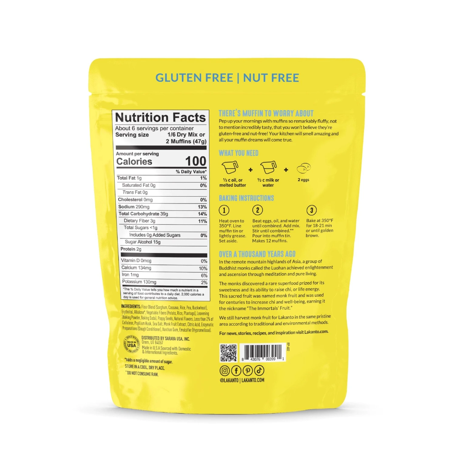 Introducing your new favorite Lemon Poppy Seed Muffin Mix. Made with a nut-free formulation and sweetened with Monk Fruit, Allulose, and Erythritol, this certified gluten-free mix yields 12 full-size muffins per packet – simply add oil, water, and 2 eggs. Keep them moist by storing in an air-tight container. Perfect for muffins or baking into a loaf.